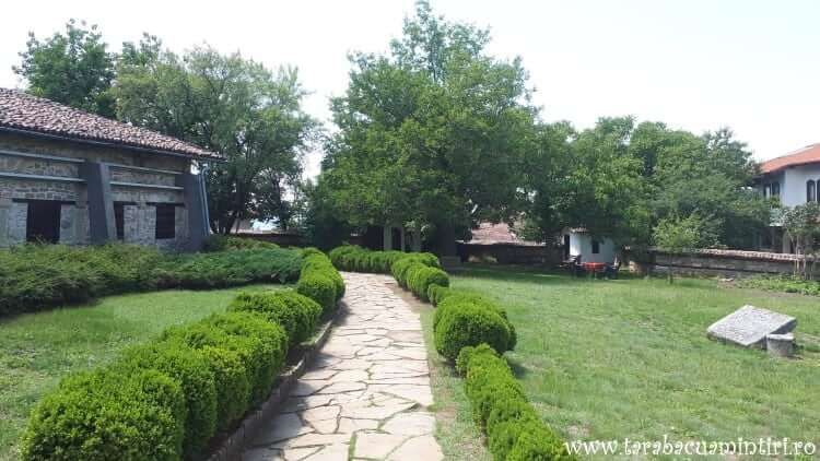 Instinctul îmi spune să pornesc în descoperirea comorilor acestui sat, lăsând parcul în partea dreaptă. Doar după câțiva pași, îmi iese în față un banner care mă atenționează că am ajuns la Biserica Sfinții Arhangheli Mihail și Gavriil. O alee de piatră încadrată de un covor verde de iarbă mă conduce spre ceea ce am considerat ca fiind cea mai frumoasă biserică din Arbanasi.