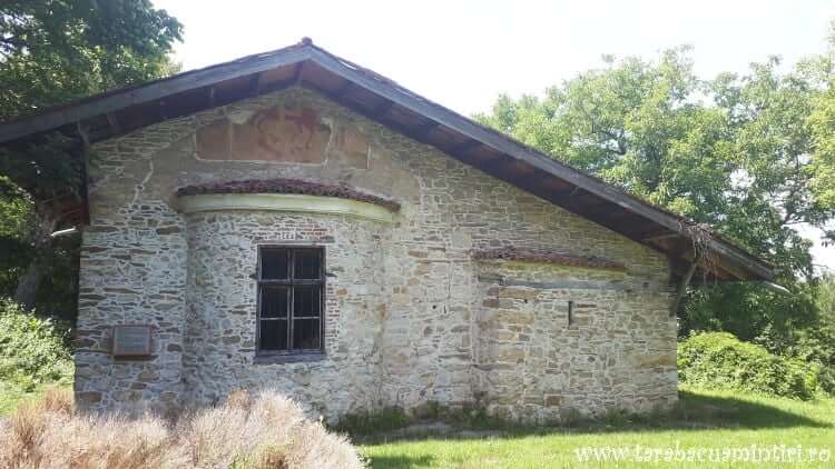 Construcția de piatră întinsă pe orizontală, datează din secolul XVII. Ferestrele mici, boltite, încadrate în rame albe văruite și ușa de lemn întărită cu ținte masive de metal dau construcției un aer de fortăreață. Privind însă întreagul domeniu care găzduiește biserica, acesta fiind îndulcit de o căsuță ca din poveste și de zeci de flori care mai de care mai colorate și mai parfumate, zici că ai ajuns în Rai.