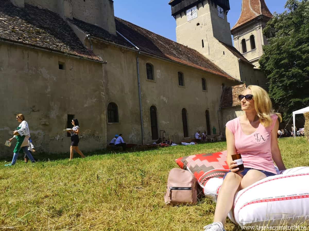 Odată intrată pe poarta care străpungea zidul am avut impresia că am intrat într-o lume de basm. Nu știam la ce să mă opresc prima dată. La tarabele colorate care mă tentau cu arome de lavandă, la minunățiile create cu migală de mâinile artiștilor pricepuți, la atelierele care aveau ca vedete culori scoase din portul tradițional săsesc sau la fotoliile ”naturale” împrumutate de la Mama Natură. Cum vi se par toate acestea așezate tihnit la umbra zidurilor vechi? O adevărată binecuvântare pentru o frumoasă zi de iulie. Și dacă mai adaug și un pahar înnobilat de binecunoscutul sirop de soc….deja suspin!☺