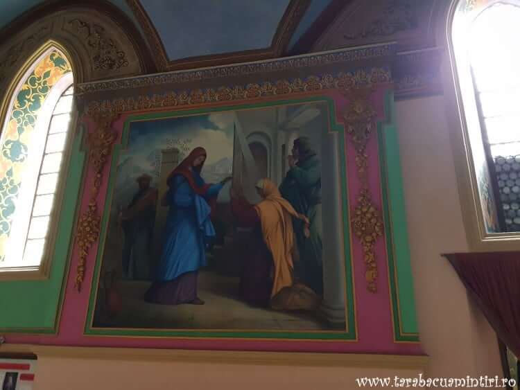 Interiorul, așa cum mă așteptam, este grandios, colorat și ușor apăsător. Două enoriașe trebăluiau de zor în fața altarului. Le-am admirat hărnicia și simplitatea din priviri.