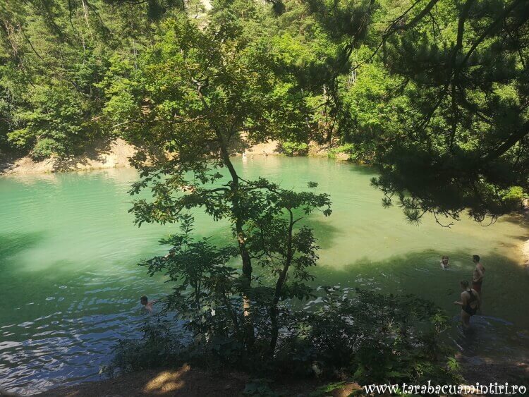 Recunosc faptul că atunci când am ajuns la Lacul Albastru am rămas puțin surprinsă. Nu mă așteptam să găsesc în jurul său atâta forfotă. Localnici, turiști români și străini, toți se bucurau de zona umbroasă din jur și de binecuvântarea unei bălăceli în apa răcoroasă.