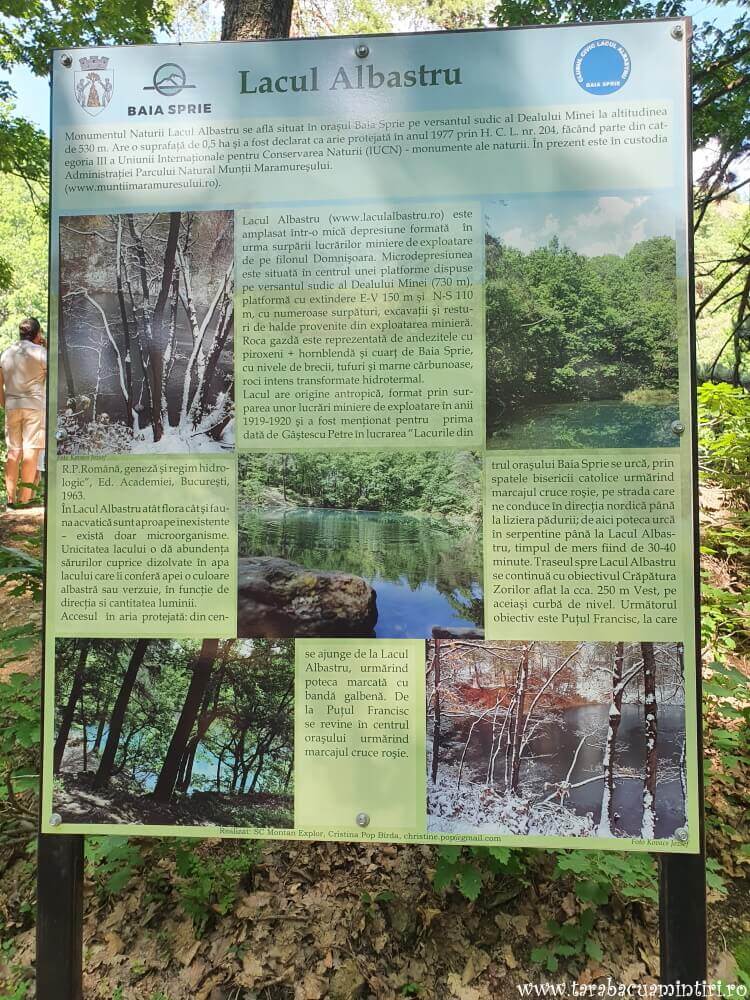 Traseul spre Lacul Albastru pornește din centrul orașului Baia Sprie, pe lângă Biserica Adormirea Maicii Domnului, urcând pe străzile Minei apoi pe Ghioceilor. Spun urcând pentru că, deși eram în mașină, aveam impresia că și eu depuneam efort pentru a parcurge traseul aflat destul de în pantă. Pe lângă pantă, e ușor dificil și faptul că strada este destul de îngustă. M-am rugat puțin să nu vină vreo mașină din sens opus. Însă, atunci când s-a întâmplat, totul s-a terminat cu bine.☺ Pentru cei mai aventuroși, se poate face această parte a traseului, pe jos. Cred că ar dura în jur de 15-20 de minute. Eu am ales mașina, împinsă de cele 30℃ care efectiv ”aprindeau” aerul.