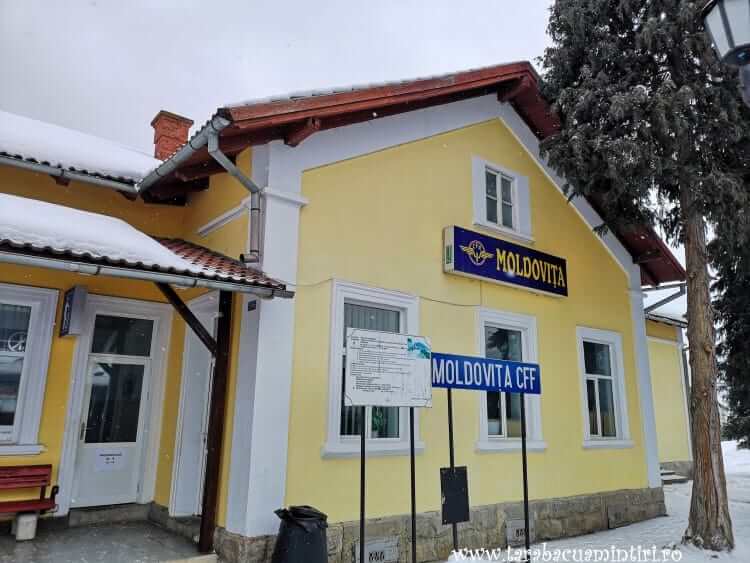 Am ajuns în Moldovița la orele amiezii. În fața gării, la adăpostul unor brazi atât de înalți încât aveam impresia că ei sunt motivul pentru care cerul se zdruncină a ninsoare, aștepta bătrâna locomotivă. În urma sa, prinse în ghețurile iernii și purtând bijuterii sclipitoare la ferestre, fremătau a aventură trei vagoane pline de turiști.